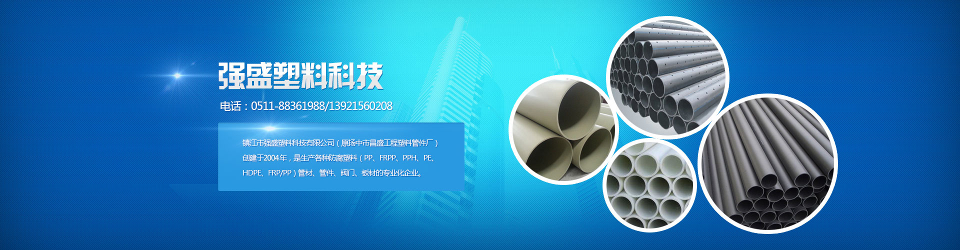 鎮(zhèn)江市強(qiáng)盛塑料科技有限公司(原揚(yáng)中市昌盛工程塑料管件廠(chǎng))創(chuàng)建于2004年,是生產(chǎn)各種防腐塑料(PP、FRPP、PPH、PE、HDPE、FRP/PP)管材、管件、閥門(mén)、板材的專(zhuān)業(yè)化企業(yè)。公司擁有各類(lèi)先進(jìn)生產(chǎn)設(shè)備,固定資產(chǎn)約3800萬(wàn)元,可生產(chǎn)管材、管件口徑為Φ15-Φ1200mm,產(chǎn)品規(guī)格齊全。目前產(chǎn)品廣泛適用于醫(yī)藥、食品、冶金、造紙、電力、礦山、城市污水處理、垃圾填埋、輕工紡織等領(lǐng)域,暢銷(xiāo)全國(guó)各省市自治區(qū),遠(yuǎn)銷(xiāo)二十多個(gè)國(guó)家及地區(qū)。